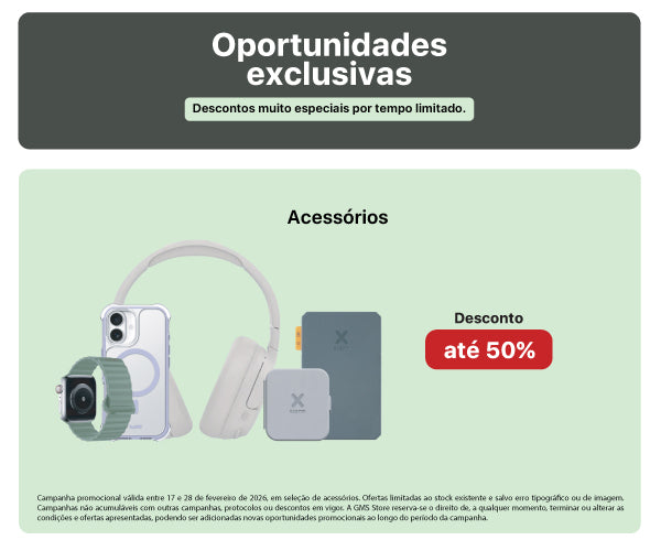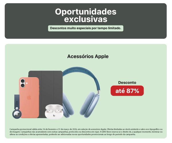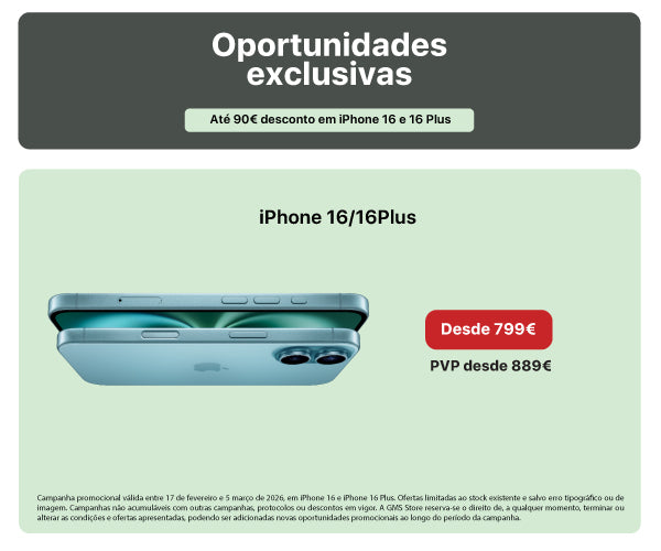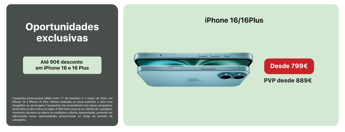 Salvo indicação em contrário, os descontos e campanhas apresentados são válidos para o dia 03-07-2025, salvo erro tipográfico ou de imagem e até ruptura de stock. Todos os valores incluem IVA à taxa legal em vigor e podem ser alterados sem aviso prévio. As imagens podem não corresponder ao produto descrito. A GMS Store declina qualquer responsabilidade sobre eventuais erros nas descrições e/ou referências dos produtos. Recomendamos sempre a confirmação das imagens e características no site do fabricante. Por questões técnicas, as cores apresentadas podem diferir ligeiramente das cores reais.