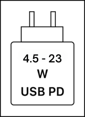 Este dispositivo é compatível com carregamento USB-C e BC1.2, conforme descrito no Fórum de Implementadores de USB, Especificação de Cabo e Conector USB Type-C® Versão 2.3 e Especificação de Carregamento de Bateria v1.2, respetivamente.