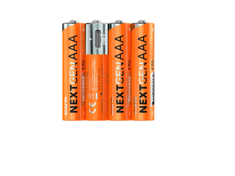 As pilhas recarregáveis USB-C AAA NextGen combinam potência, rapidez e sustentabilidade num formato compacto. Cada pilha oferece 570mAh de capacidade, ideal para comandos, ratos sem fios, luzes LED, brinquedos e outros dispositivos do dia a dia.